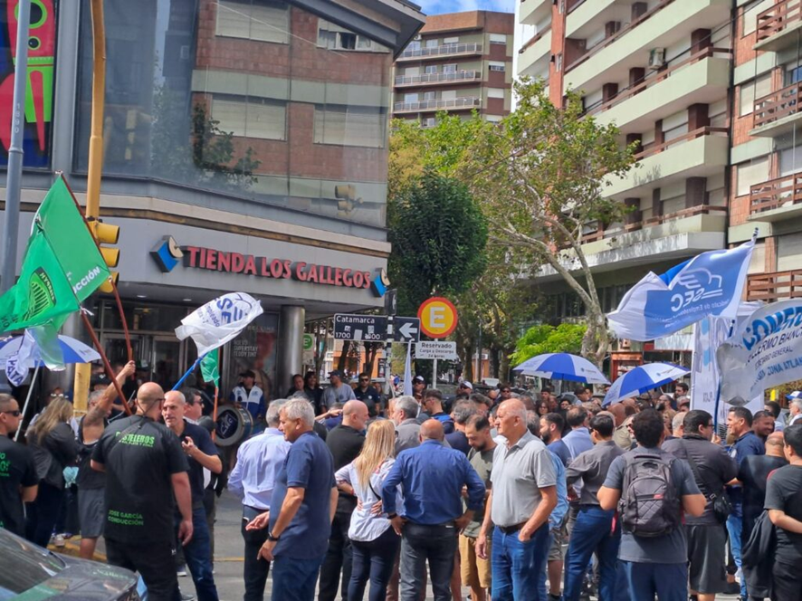 Los trabajadores se manifiestan en el centro de Bahía Blanca, frente a la sede del Grupo Securion, exigiendo la reincorporación de los 33 vigiladores despedidos en las últimas 12 horas. El Sindicato de Seguridad e Investigaciones Privadas denuncian a la empresa por persecución gremial a los trabajadores despedidos y está realizando por tercera semana consecutiva medidas de fuerzas ante la falta de acuerdos paritarios.