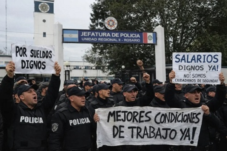 SANTA FE: LA PROTESTA POLICIAL SE EXTIENDE AL NORTE PROVINCIAL. Tras el suicidio de un efectivo, las protestas se multiplican en Rosario, Santa Fe y el norte. Autoconvocados, penitenciarios y familias reclaman recomposición salarial, descanso real y contención. Salarios bajos, desarraigo y salud mental en el centro de un conflicto que crece. El gobierno sigue sin dar respuestas concretas.