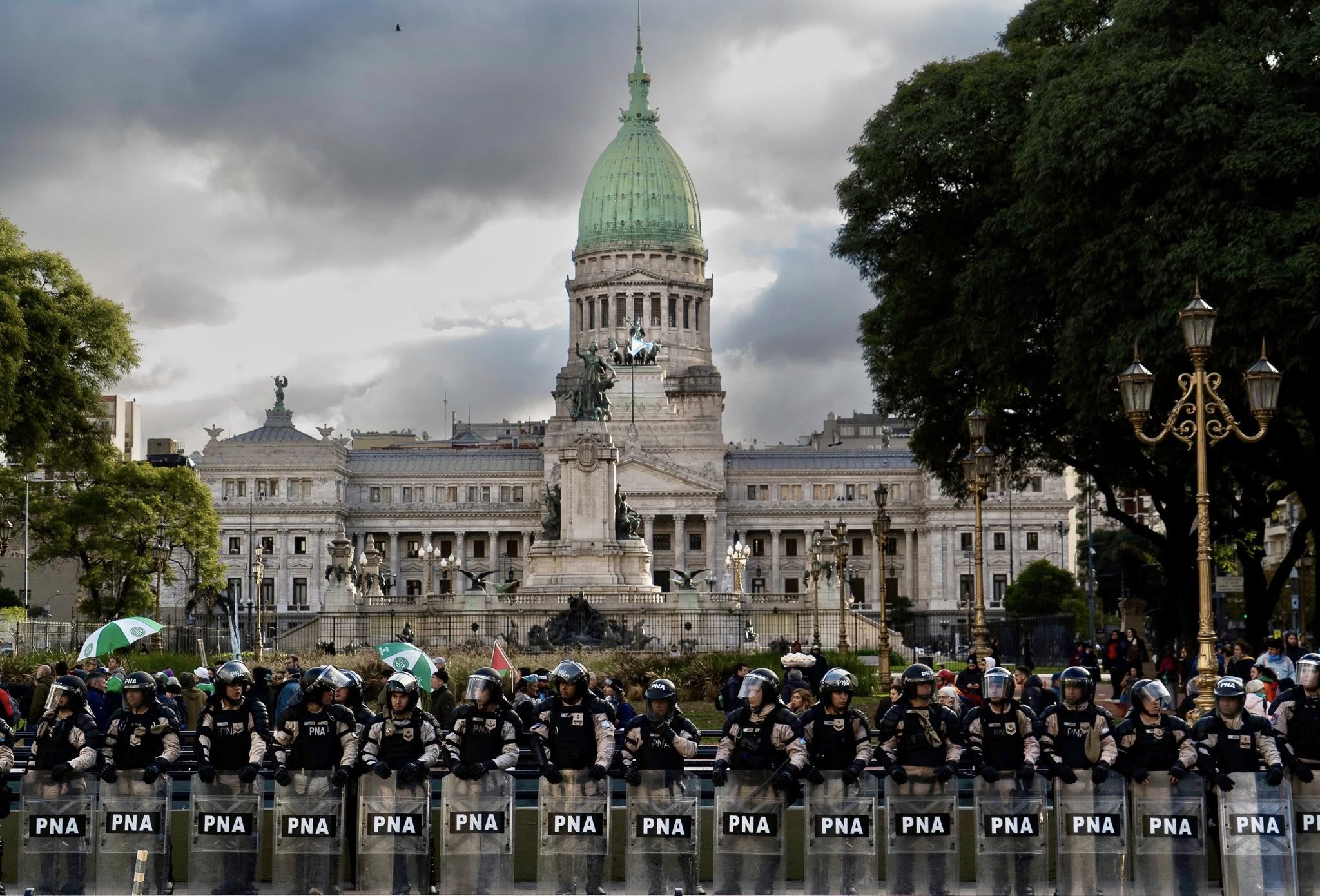 JUBILADOS SE ENCADEN FRENTE AL CONGRESO. Cuando la marcha de los miércoles y la sólita represión se estaban convirtiendo en rutina, un grupo de siete jubilados decidió realizar una vigilia desde el martes a la noche encadenándose frente al Congreso para retomar la iniciativa y tornarse nuevamente visibles. “Digamos basta todos a la calle. Vienen por todo”, decían los carteles. Permanecieron allí durante el día, bajo el rayo del sol, con sus reposeras, a pesar de las amenazas policiales de desalojo.