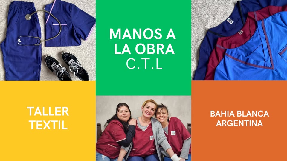 Natalia Aguilar: “Hacemos indumentaria laboral liviana: ambos para médicos, chaquetas para secretarias, delantales para maestranza y gastronomía, conjuntos de chef. Ahora estamos con una licitación muy grande del Hospital Municipal de Bahía Blanca. Es una entidad más chica que el Penna, que es nacional, pero igual muy importante. Ganamos la licitación siendo una cooperativa nueva, y eso nos llena de orgullo.”